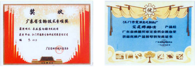 ☆八八年寶蓮牌酶清獲廣東省優(yōu)質(zhì)產(chǎn)品獎(jiǎng)